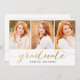 Gold Script 3 Photos Collage Graduation Party Invitation