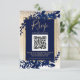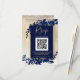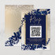 A modern, chic and elegant yellow gold typography Floral navy blue Christmas winter rsvp wedding with hand painted blue watercolor leaf foliage on an elegant gold background with white snow and snowflakes, add your qr code..