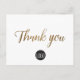 Personalize this simple and easy to use faux gold thank you postcard template with your company's logo, message, name, and return address. Let your clients, customers, patrons know you are grateful for their support during these uncertain times. Featuring a printed modern "thank you" script in modern script.