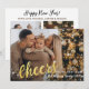 Gold Script Cheers to the New Year 3 Photo Holiday Card