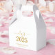 Stylish elegant custom graduation party supply! Celebrate the graduate's accomplishment in style with this trendy graduation favour box. Design features "Class of 2025" in gold font on a clean white background. Personalize this product by adding the name and school name. Perfect graduation keepsake. Easy to customize. Congratulations!