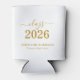 Stylish elegant custom graduation party supply! Celebrate the graduate's accomplishment in style with this trendy graduation party can coolers. Design features "Class of 2026" in gold font on a clean white background. Personalize this product by adding the year of graduation, graduate's name and school name. Easy to customize. Congratulations!