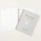Romantic design features a soft floral flower in white, "Future Mrs.", and the words "Wedding Plans" in a gold typography script against a dove-grey textured background. Easily customize your names and date of choice. The perfect gift idea for the bride-to-be to organize all her wedding planning needs.