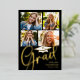 Showcase your achievement with this graduation photo collage template party invite, featuring real gold foil for a luxurious touch. Perfect for high school or college graduates, this traditional announcement beautifully highlights your senior photography style with multiple photos and a simple grad cap accent. The elegant calligraphy script and trendy typography design create a minimalist classy look, making it a stylish and timeless way to celebrate your class of milestone with friends and family.