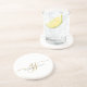 A chic modern stylish gold black monogram on white coasters, with a dramatic script initial with swashes and your full name in a modern serif type,