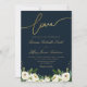 A modern combination of beautiful garden blooms and faux gold calligraphy on navy background. The lovey navy blue colour, text and other features of this template can be customized. You can edit the text for wording, font, size, and placement. To edit just click the customize link.