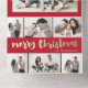 A simple all in one Christmas card featuring seven photo apertures with gold script merry Christmas lettering. The background colour is completely customizable to easily match the colour scheme of your photograph(s).