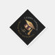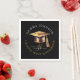Modern minimalist graduation party black napkins, with gold script initials and name underneath. A stylish watercolor style with your school name in a curved type, and a gold graduation cap. Gold and black type on white.