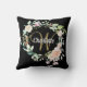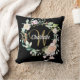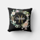 Pretty monogram throw pillow featuring a name and script surname initial that is framed by a delicate watercolor rose garland floral on a black background. Personalize to create a special keepsake gift to treasure! Designed by Thisisnotme©
