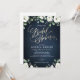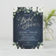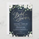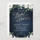 Modern faux gold "Bridal Shower" calligraphy and watercolor white floral eucalyptus greenery on dark navy blue background, elegant and stylish, great for greenery rustic wedding, botanical garden wedding, boho floral wedding in summer and winter.