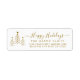 Elegant, Modern Gold and White Hand Lettered Christmas Family Return Address Labels. Featuring a pretty hand-written script with saying "merry christmas" in swash-tail font, pine trees dodle with little hearts. Great for Christmas holiday season, easy to personalize them with your names and return address info.