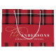 Gold script red plaid tartan rustic Christmas Larg Large Gift Bag