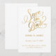 An elegant save the date card featuring shimmering gold script and a refined layout. Perfect for formal, classic, or modern weddings. Announce your special day with timeless luxury and style.