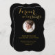 Forever in our hearts in gold calligraphy. A beautiful Thank You sympathy note card featuring your loved one in a circular gold frame. Below please find a customizable bible verse and a custom message on the back. With questions please contact through zazzle.