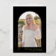 Celebrate your achievement with this gold foil graduate invitation, featuring a graduation two-photo template perfect for any high school or senior grad. Designed with elegant calligraphy script and stylish typography, this grad party invite showcases a classic arch style with a trendy minimal design in simple black and white. Personalize it with your photos and details to create a timeless class of celebration keepsake!