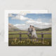 Gorgeous faux gold foil typography on the front of this designer postcard which you can upload into with your own engagement/wedding photo portrait. Easily and quickly personalize this designer professionally printed thank you postcard here and now by just typing over the example text and adding your own photograph. Elegant, chic, simple and classy gold script/cursive typography.