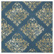 Gold floral like scroll work in a diamond pattern over a dark purple/deep blue background.