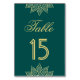 Elegant table number card featuring an elegant henna art against a sea green background.