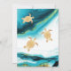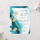 This elegant invitation for a birthday at the beach or beach themed party features gold tribal turtles on a teal blue turquoise ink watercolor background.