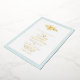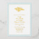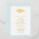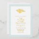 Stylish foil seashore themed wedding invitation, with an aqua wave pattern frame, on the front, with gold seashell and custom gold foil text. Personalize the information for your beach wedding.