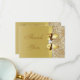 Elegant custom gold Thank You wedding flat cards for newly weds to send to their wedding guests with a beautiful printed golden sequins glitter pattern, a cute shiny gold printed bow and ribbon and pretty printed diamond bling jewel. These classy, glamourous, fashionable invites are decorated both sides. Beautiful, chic, trendy, modern invitations. Please note: All invites on Zazzle have flat printed images. Text, font and colour of font can all be customized. If you need assistance customizing your product please contact me through my store. I will be happy to help. I have matching products in my store.