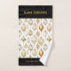 A truly elegant Christmas holiday bath towel set features a lovely watercolor pattern of vintage gold and silver ornaments that looks really special on its black background. You can keep or change the gold-coloured "Merry Christmas" greeting. Edit the "from" names or change them to another phrase you like. This is very nice for your home during the winter holidays or as a fine gift for a good friend or special family.