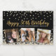 Elegant custom birthday design featuring gold and silver confetti over a black background, modern script typography with the words "Happy 50th Birthday" (in gold), your name and birth date (in silver) and three of your favourite photos framed in metallic gold foil.