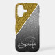 Ce design élégant à l'ombre de parties scintillant présente un or en haut à gauche et du noir en bas à l'arrière - plan avec nom personnalisé et monogramme de lettre initiale. Personnalisez le coque dans les champs de texte avec un nom et une initiale, supprimez les deux ou un ou utilisez l'outil de conception de modification pour sélectionner un style, une taille et une couleur de police que vous souhaitez.