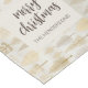 A vintage pattern of gold and silver Christmas pine trees look lovely over a snowy off-white background in this watercolor design that looks very nice on your winter holiday table runner. Each end of the runner features your family name. Please edit the example name. One end shows the suggested greeting "Merry Christmas" and the other end has the suggested greeting "Happy New Year". However, you can change these to be other greetings if you prefer.