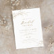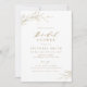 Minimalist bridal shower invitation features rustic hand illustrated botanical leaves and modern trendy script in faux gold and white, simple and elegant, great for summer rustic wedding, spring botanical garden wedding.