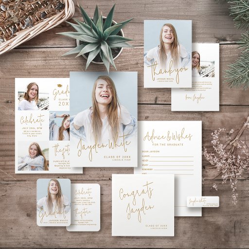 Simple and fun gold modern script, great personalized return address label for graduation party.