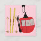 Gold Skis And Poles | Retro Ski Lift Holiday Pink Enclosure Card