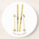 Gold Skis Poles | Vintage Ski Illustration Coaster