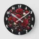 Gold Skulls & Red Roses Sparkle Gothic Glamour Round Clock