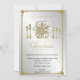 This beautiful dinner party invitation is perfect for your Christmas event. The background is a soft silver gradient with an elegant gold frame. Centred towards the top there is a beautiful snowflake that almost looks like glass with gold edges. To the left are two gold forks and to the right is the matching knife and spoons. Your party information goes to the bottom.