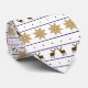 Here's a pretty nordic Holiday Season necktie that easily be worn through the winter and beyond. It features a nordic pattern in olive gold, antique gold, and white with accents of blue. The predominant images are deer and snowflakes. Very tasteful and attractive