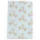 Gift bag with a festive holiday repeating pattern of chic gold snowflakes drawn with elegant crystal shapes. A frosty light blue background.