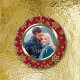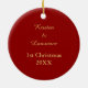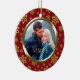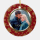 This Christmas ornament features your photograph within a pretty frame of gold faux glitter snowflakes on a Holiday red background. The snowflake pattern frame has an inside faux gold lining. The back of the ornament has your custom text in gold on a red background; make it say whatever you'd like! A pretty and thoughtful keepsake gift for any couple. *Please note - the image is printed and contains no actual glitter.*