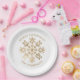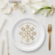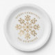 Gold snowflake personalized Christmas paper plates. Easy to change the text.