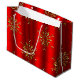 Gold Snowflake Stars on Red Christmas Large Gift Bag