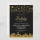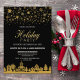A stylish black with gold snowflakes holiday party invitation for you to invite your friends and loved ones to celebrate the festive season.