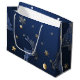 Gold Snowflakes Blue Christmas Tree Reindeer Large Gift Bag