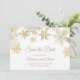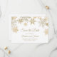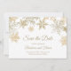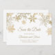 Winter wedding elegant save the date card with gold snowflakes. Perfect for Christmas weddings and other seasonal and holiday events.