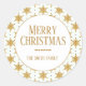 Gold Snowflakes on White Merry Christmas Hearts Classic Round Sticker
