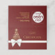 Luxurious and rich holiday design featuring a splendid Christmas tree silhouette with golden snowflakes. Decorated with a white gold gift bow on a red lush background. This festive gift certificate is perfect for your small business or to gift friends and family.