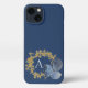Gold Sparkle and Blue Leaf Monogram Add Your Name iPhone Case