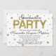 Festive fun Gold glitter confetti, elegant and feminine graduation party invitation for her as she moves to the next phase of life. Glittery sparkly white and gold pattern print polka dot backdrop. Stylish and classy for a fun open house formal soiree or a casual fun get-together.