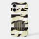 Beautiful and glamourous for her, this phone case features a pattern of light gold sparkly lip images on a black and white striped background. Your monogram is at the lower centre in light gold, placed on a semi transparent circle banner that is also lined in thin gold. She will love this case!