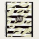 Beautiful and glamourous for her, this planner features a pattern of light gold sparkly lip images on a black and white striped background. Your monogram is at the centre in light gold, placed on a black circle banner that is also lined in thin gold. The back of the planner has the same pattern without the banner or monogram.