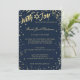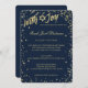 Elegant sparkly gold starry sky and hand script inspired bar mitzvah or bat mitzvah invitation. Bold "with Joy" expression in gold with Star of David looks great with the dark blue background of this formal and fun invitation.